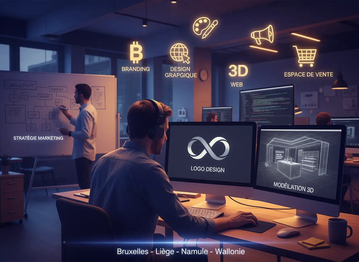 Nous accompagnons les PME et indépendants en Belgique dans leur stratégie marketing digital, la digitalisation, le développement web, le branding, l’intégration de l’IA et l’impression textile DTF. Un service sur-mesure et personnalisé à chaque étape de votre projet.